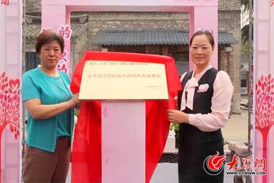 山东省血液心副主任刘金玲、完美公司行政部经理耿学花共同揭牌