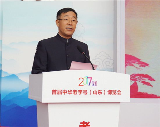 山东省老字号企业协会会长、东阿阿胶总裁秦玉峰代表参展老字号宣读倡议书